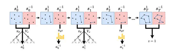 AlphaZero-type algorithms may stop improving on single-player tasks in case the value network guiding the tree search is unable to approximate the outcome of an episode sufficiently well. One technique to address this problem is transforming the single-player task through self-competition. The main idea is to compute a scalar baseline from the agent’s historical performances and to reshape an episode’s reward into a binary output, indicating whether the baseline has been exceeded or not. However, this baseline only carries limited information for the agent about strategies how to improve. We leverage the idea of self-competition and directly incorporate a historical policy into the planning process instead of its scalar performance. Based on the recently introduced Gumbel AlphaZero (GAZ), we propose our algorithm GAZ ‘Play-to-Plan’ (GAZ PTP), in which the agent learns to find strong trajectories by planning against possible strategies of its past self. We show the effectiveness of our approach in two well-known combinatorial optimization problems, the Traveling Salesman Problem and the Job-Shop Scheduling Problem. With only half of the simulation budget for search, GAZ PTP consistently outperforms all selected single-player variants of GAZ.